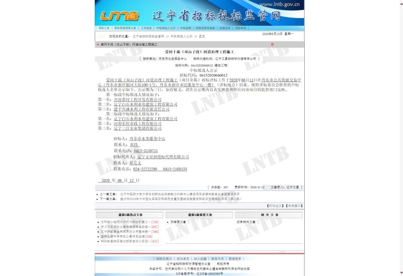 6月11日,白石建筑公司在丹东市爱河干流河道治理工程招标项目竞标中,再次中标双山子段第二标段!这是今年以来继5月20日中标丹东凤城市高标准农田项目后,第二次成功开拓丹东市水利建筑市场。