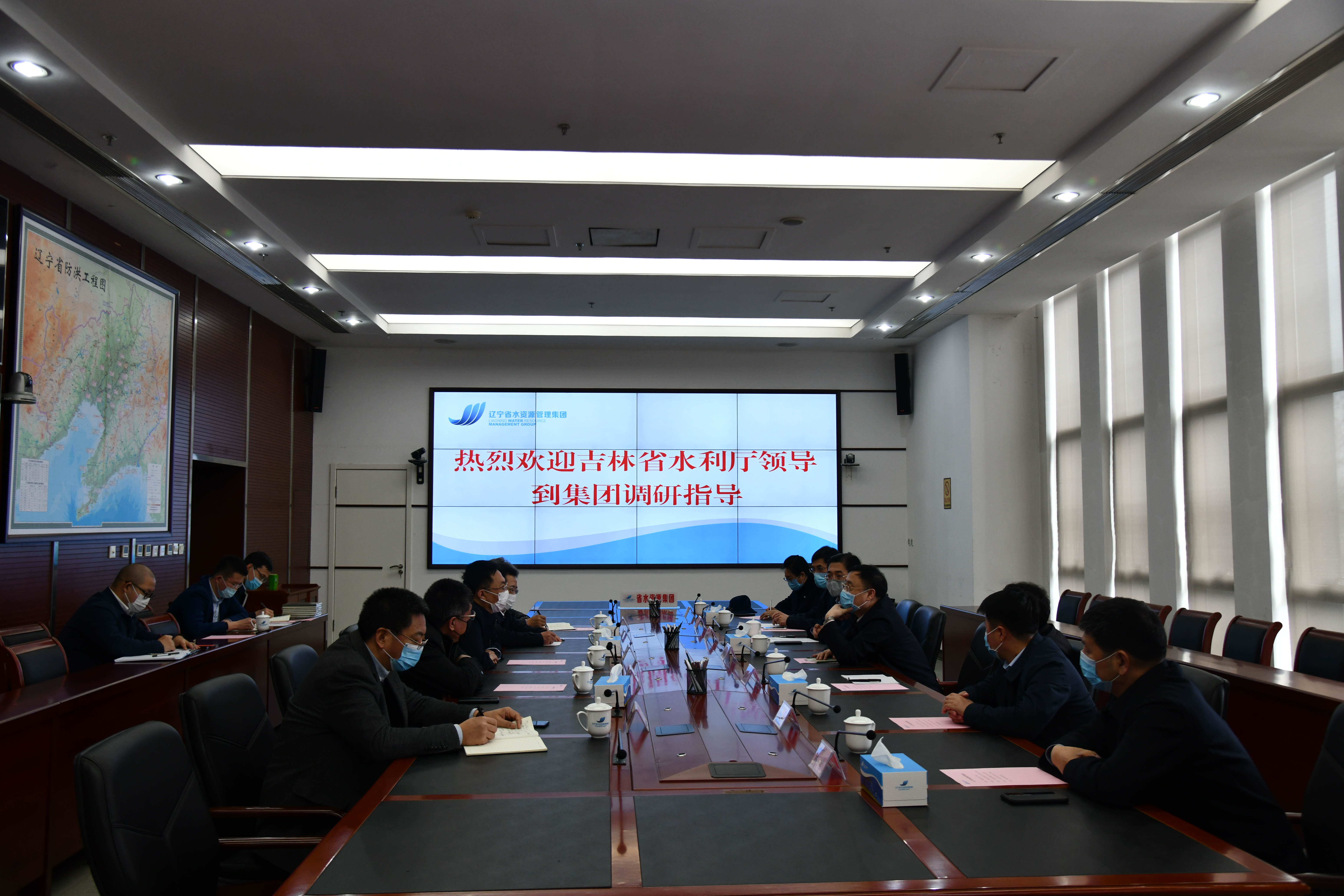 吉林省水利厅总工程师程玉辉、总规划师仇旭、办公室主任张伟平、规计处处长孙立新、水利设计院院长杨军、二级调研员齐科翀,集团副总经理兼辽西北公司董事长曹思超、总工程师兼辽西北公司总经理吴铁华及设计院公司、战略发展部负责同志等陪同座谈。