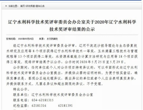 辽水咨询公司荣获两项2020年辽宁水利科学技术奖
